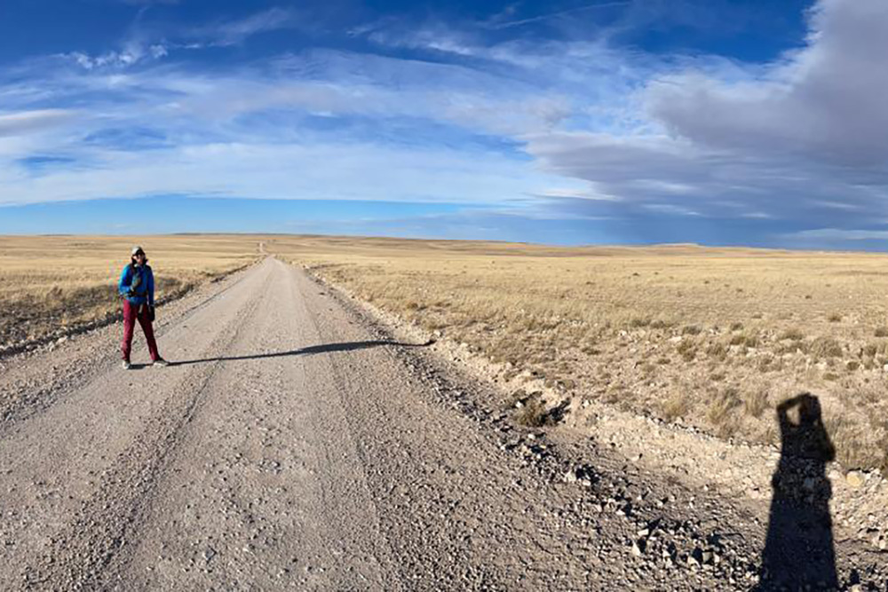 We departed First United Methodist Church in Roswell on a cold and windy Martin Luther King Day. We buoyed our walking spirits singing the civil rights song "Ain't Gonna Let Nobody Turn Me Around” as we went. This day was a threshold between the relatively populous region between Carlsbad and Roswell into a very remote region. The roads became quieter and opened into a vast expanse of rolling hills and grasses with Capitan framing the northwest horizon of our journey.