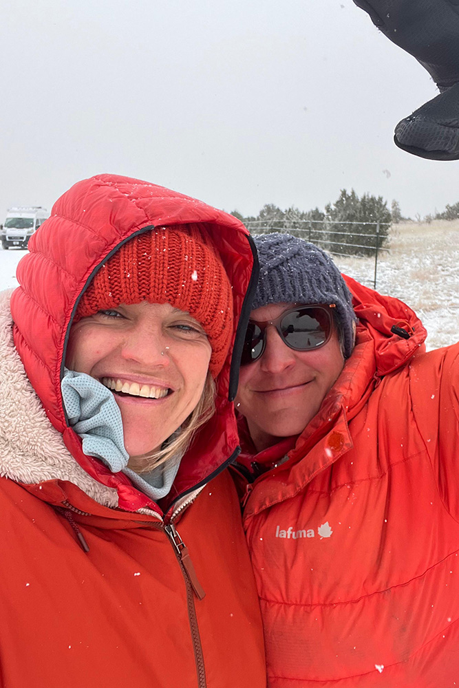 As this major winter storm rolled in this Friday, Clara departed to return home and attend to her role as a minister as First Congregational UCC ABQ before returning to the pilgrimage on February 1st. Desiree bravely journeyed ahead into the first flakes of snow and was met by Sarah Byrden and James and Joyce Skeet at the end of her solo trek.
