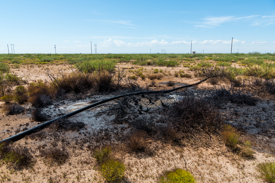 As we drove deeper into the Loco Hills oil field, we observed multiple instances of illegal flaring—the burning of excess gas, which often releases large amounts of methane and other pollutants directly into the atmosphere. Flaring wastes valuable natural gas and contributes significantly to climate pollution.