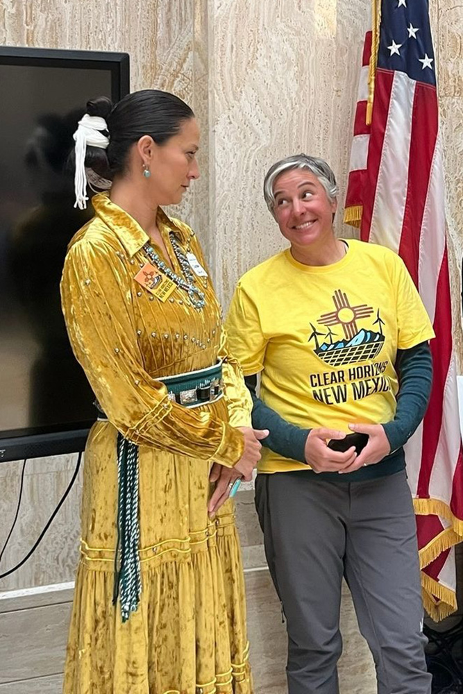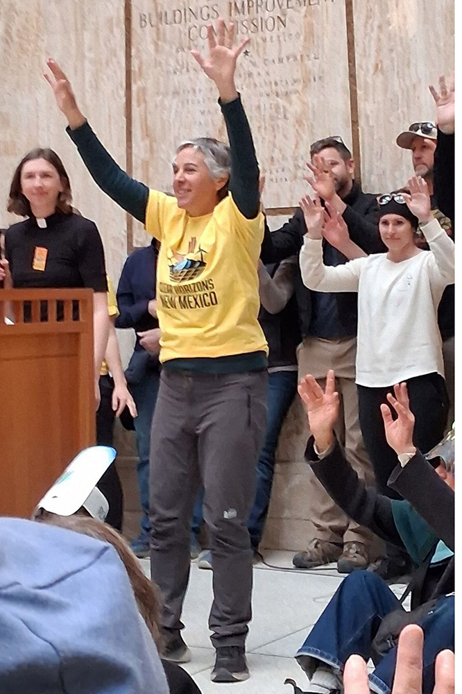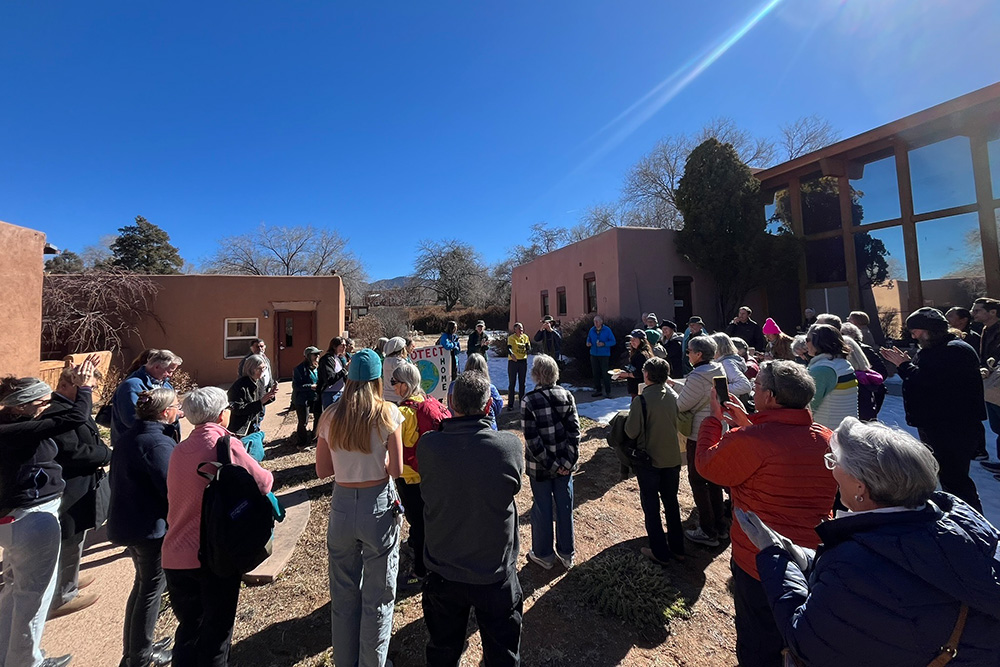 In the heart of the Roundhouse, our Executive Director, Desirée Bernard, stood in the Rotunda and addressed hundreds of gathered citizens, legislators, and advocates. She reflected on the pilgrimage and our purpose of creatively and soulfully responding to the call to change in the face of our current planetary crisis. Throughout the pilgrimage, we had carried the hopes, dreams, and prayers of people across the state of New Mexico to this very moment at the Roundhouse—calling for boldness from New Mexico legislators to address climate change and implement climate-friendly policies that match the scale of the crisis we face.
