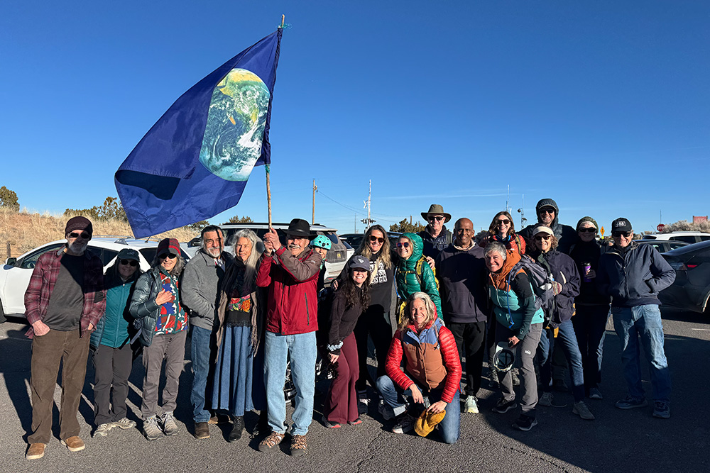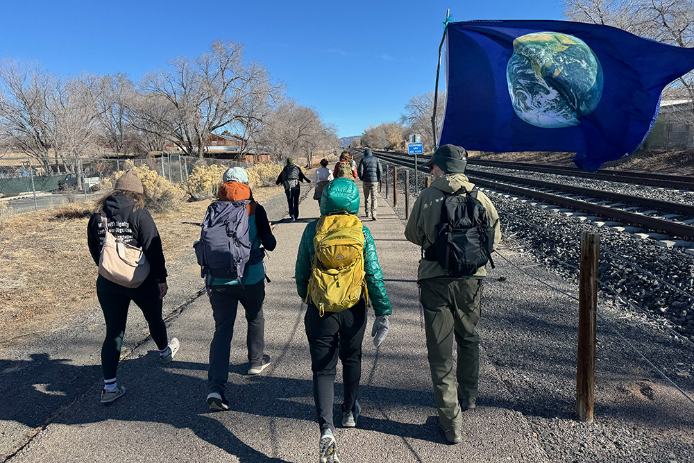 Our final miles began at the Rail Trail trailhead on Rabbit Road, where a dedicated group of climate advocates gathered in the early morning light. These concluding steps of our pilgrimage carried the weight and intention of all that had come before. From the trailhead, we made our way to the Railyard, then the Open Circle Church, where we were welcomed with a beautiful ceremony and blessing that honored both the journey behind us and the critical miles still ahead.